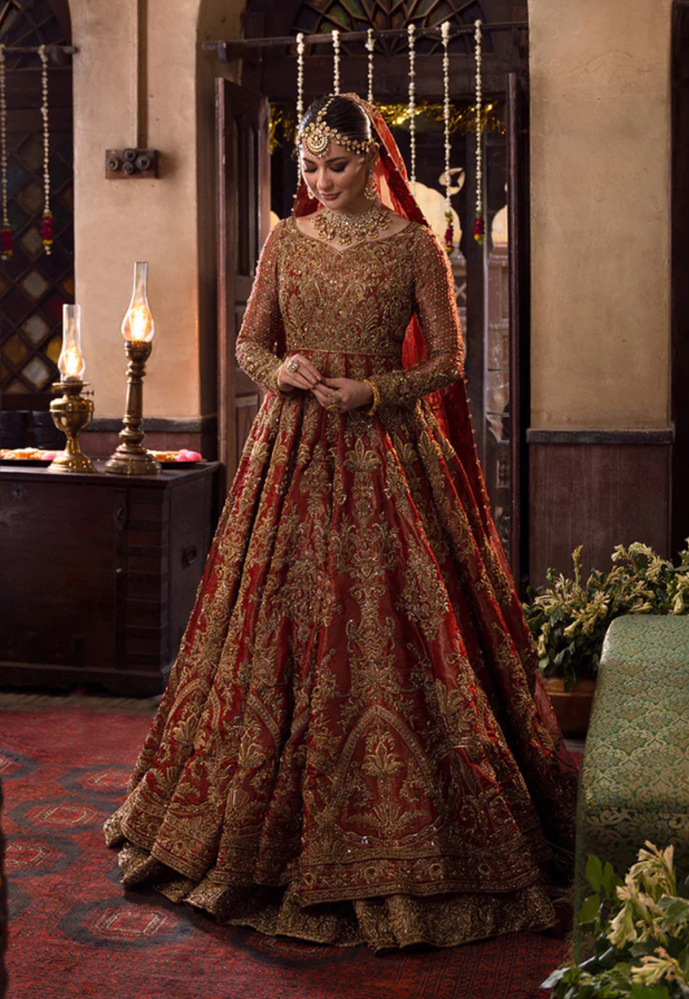 Be the first to review “Deep Red handmade kora dabka Bridal Lehnga”