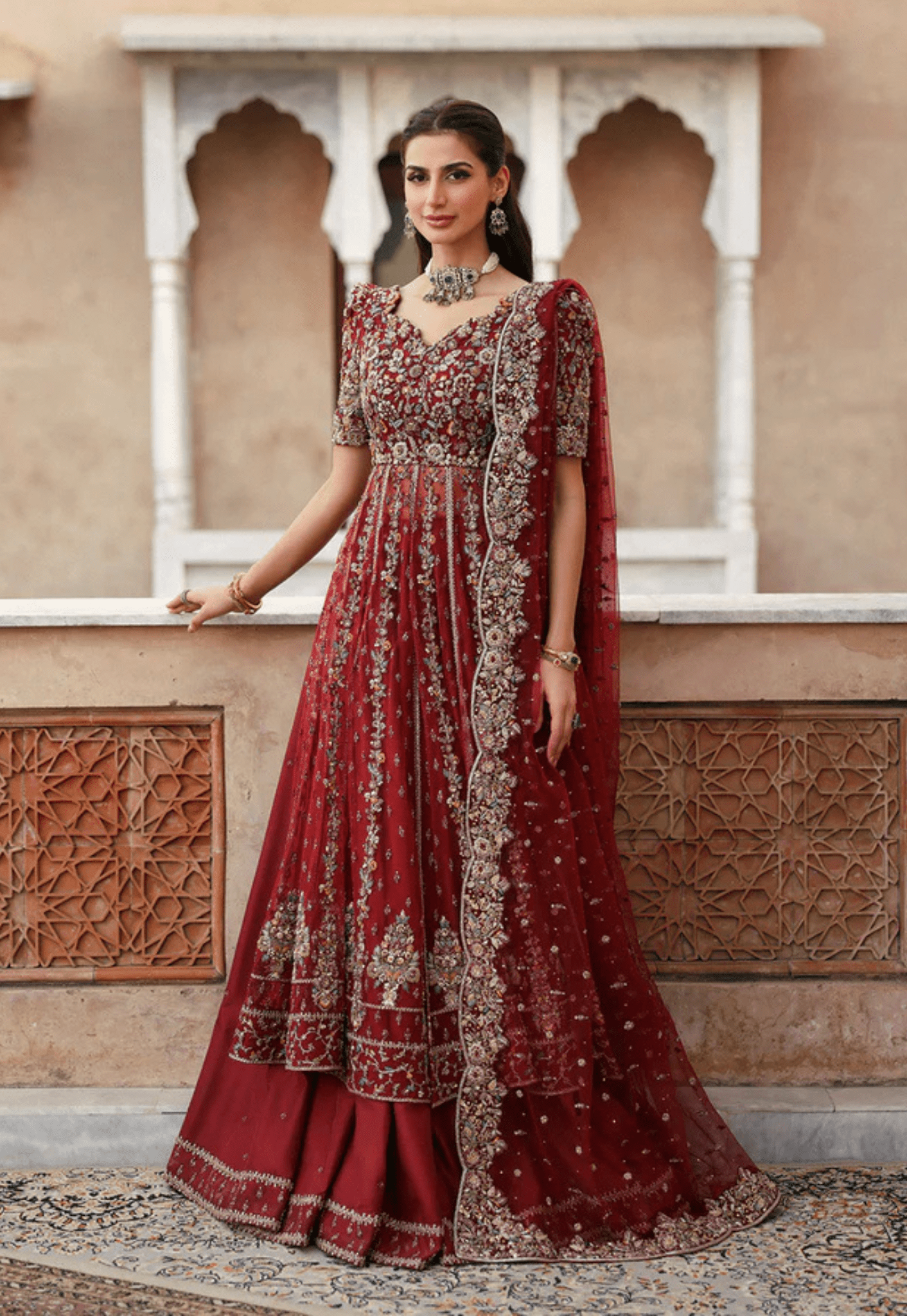 Mehar Bridal crimson net Dress with Handmade Embroidery