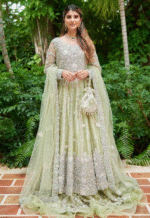Special Embroidery handmade kora dabka zari stich Mint Green Net kalidar worked with silver dabka, sequins, Japanese beads, and Resham Paired with a worked lehenga and a net dupatta.
