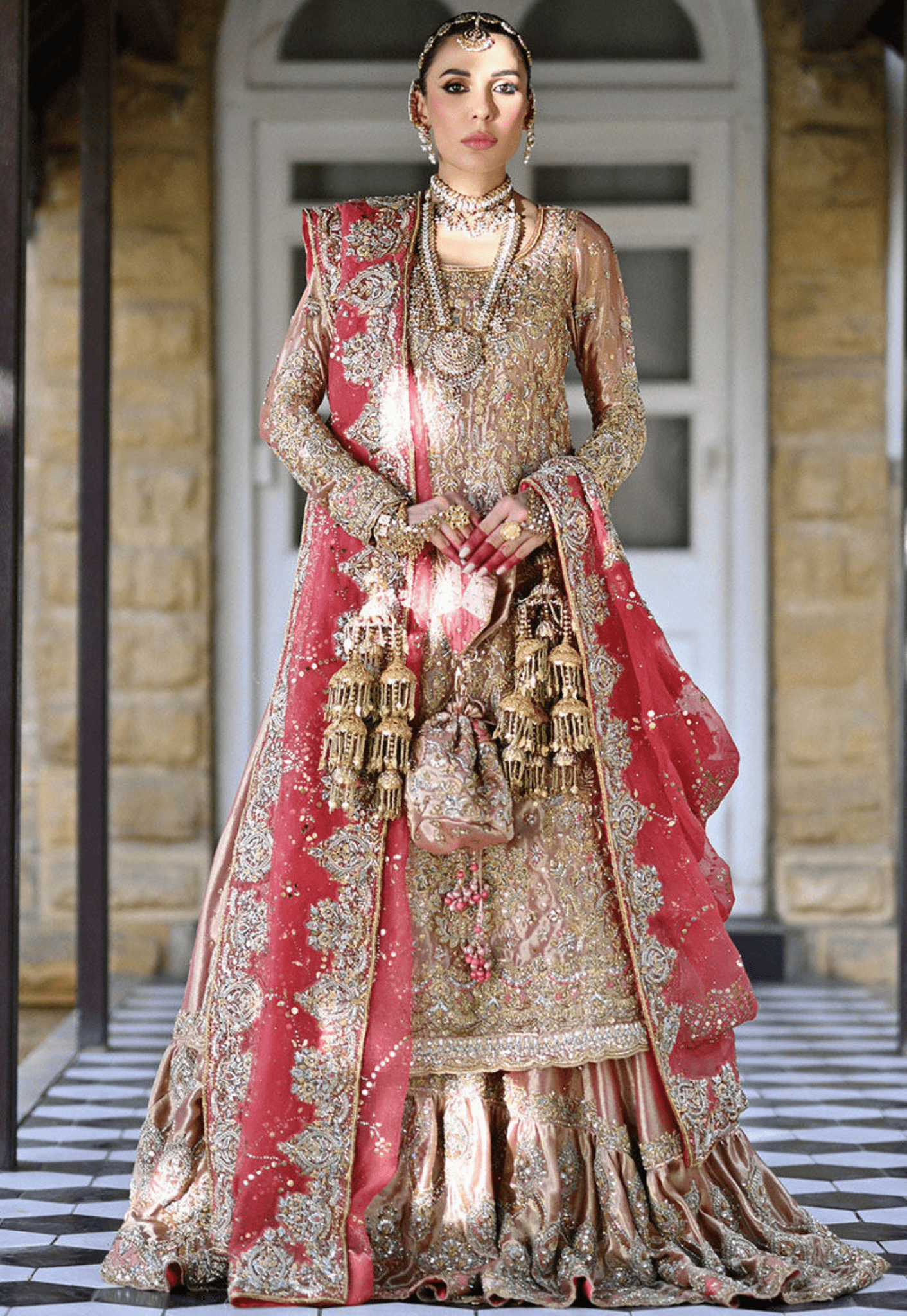 Watermelon Pink Handwork kora dabka bridal farshi lehenga